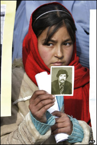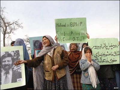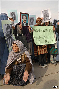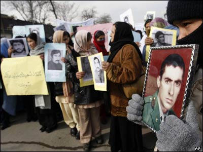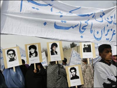 دهها تن از بازماندگان قربانیان جنگهای سه دهه گذشته افغانستان، روز دوشنبه 10 دسامبر، همزمان با سالروز تصویب اعلامیه جهانی حقوق بشر، در برابر دفتر سازمان ملل متحد راهپیمایی کردند. شرکت کنندگان در این راهپیمایی، عکسهایی از قربانیان جنگ ها، به ویژه کسانی که در جریان تسویه حساب های جناحی، ناپدید (مفقود الاثر) شده اند، در دست داشتند. دو روز پیش هم، در مراسمی که به همین مناسبت، با حضور حامد کرزی رئیس جمهور افغانستان برگزار شد، بازماندگان مفقود شدگان این خصومت ها، از رئیس جمهور خواهان رسیدگی به وضعیت آنان و محاکمه جنایتکاران جنگی شدند.