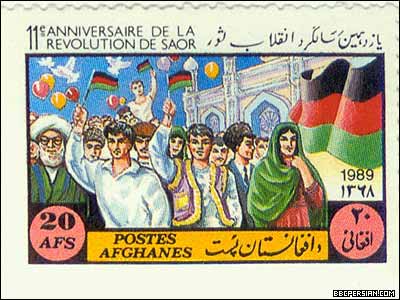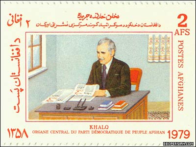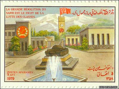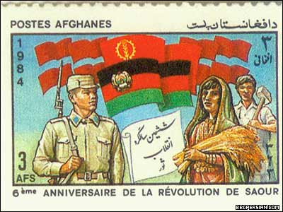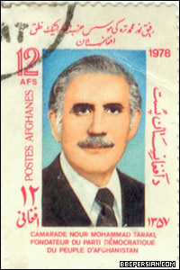 با روی کار آمدن حزب دموکراتيک خلق به رهبری نور محمد تره کی، تیکت های پستی (تمبر) نیز، به عرصه ای برای تبلیغات حزبی و سیاسی تبدیل شد. تصاویری از نورمحمد تره کی به عنوان "موسس حزب دموکراتیک خلق افغانستان"، کودتای هفت ثور، طرح و تصاویر کارگری و کمونیستی، به همراه چاپ تصاویر رهبران شوروری، از جمله لنین، طرحهای تیکت های پستی این دوره را تشکیل می داد. این تیکت ها، همچنین تغییراتی را که گفته می شد حاکمیت جدید افغانستان، در زندگی مردم این کشور، از جمله زنان، جوانان و کارگران، به وجود آورده، به نمایش می گذاشتند. گرامیداشت سالگرد کودتای هفت ثور، تا زمان سقوط دولت دکتر نجیب الله در ابتدای دهه نود میلادی، از موضوعات ثابت تمبرهای پستی افغانستان بود. متن این تیکت های پستی، به زبان های پشتو و فرانسوی بود.