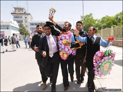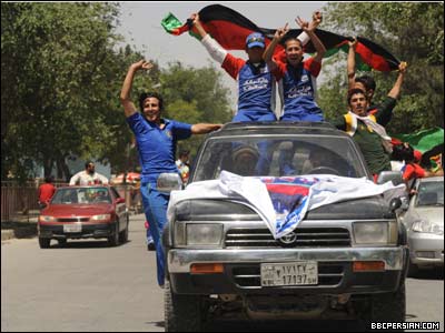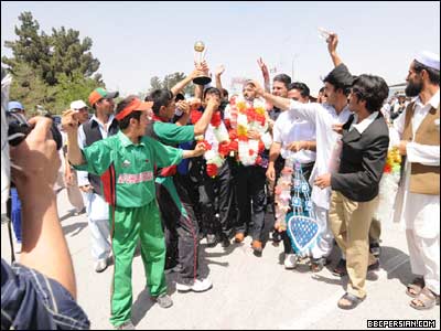 اعضای تیم ملی کریکت افغانستان، پس از حضور درخشان در مسابقات بین المللی جزیره جرزی بریتانیا و قهرمانی در میان دوازده کشور شرکت کننده در این بازیها، روز دوشنبه (۱۳ جوزا / خرداد) به کشورشان باز گشتند. بازگشت این تیم به کابل، با برگزاری جشن های خیابانی و رقص و پایکوبی جوانان افغان همراه بود. تیم ملی کریکت افغانستان، برای حضور در جام جهانی ۲۰۱۱ تلاش می کند و با پیروزی در مسابقات جرزی، جواز شرکت در مرحله بالاتر رقابت های انتخابی جام جهانی را بدست آورده است. حامد کرزی رئیس جمهور افغانستان، با تبریک پیروزی تیم ملی کریکت کشورش گفته است: "تیم ملی کریکت افغانستان با این پیروزی نشان دادن که با وجود جنگ های چندین ساله و مشکلات اقتصادی، افغان ها می توانند به افتخارات زیادی نایل آیند".