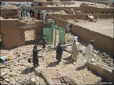 بمباران مناطق مسکونی در افغانستان، بار دیگر قربانی گرفت. درحالی که نیروهای ائتلاف از کشتن سی شورشی در ولسوالی شیندند ولایت هرات خبر دادند، وزارت داخله افغانستان اعلام کرده که دست کم نود غیرنظامی در این حمله کشته شده اند. یک روز پس از این حادثه، مردم خشمگین در منطقه عزیزآباد شیندند دست به تظاهرات زدند شعارهای ضد آمریکایی سردادند و به سوی سربازان ارتش ملی مستقر سنگ پرتاب کردند. روز شنبه، خبرنگاران و نمایندگان رسانه های گروهی، از سوی مردم محل اجازه یافتند تا برای بازدید از محل حادثه به آنجا بروند. در محل بمباران شده، خانه های مسکونی به همراه لوازم خانه و لباس و کفش قربانیان حادثه به خبرنگاران نشان داده شد. شاهدان عینی به بی بی سی گفتند:"همه کشته شدگان این حادثه، شرکت کنندگان در یک مراسم خیرات (نذری) بوده اند. آنان ده ها قبر از را که قربانیان این حادثه را در آن دفن کرده بودند به خبرنگاران نشان دادند.