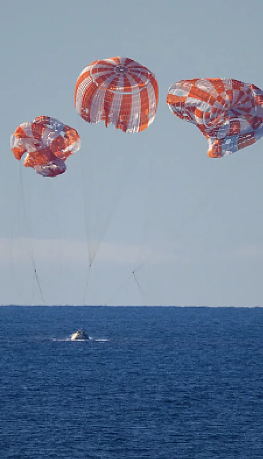 اوریون، کپسول خدمه، درست طبق برنامه در اقیانوس آرام، در فاصله تقریبا یک و نیم کیلومتری از هدف خود، در آب فرود آمد