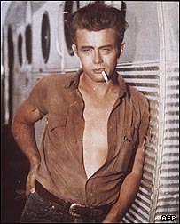 در تمام تاريخ سينما و هاليوود شايد هيچ بازيگری به اندازه جيمز دين با توجه به حضور کوتاهش در سينما شهرت نداشته باشد. شايد او هم مانند دو چهره ديگر اين کتاب ( کندی و مونرو) بخشی از شهرتش را پس از مرگ اتفاقی و زودرسش به دست آورده است. اما به هرحال عکسهايی که از او گرفته شده حاکی از آن است که اين بازيگر در زمان خود نيز به شهرت قابل توجه ای دست يافته بود. دهه پنجاه ميلادی آغاز شکل گيری فرهنگ تازه ای در آمريکا بود، فرهنگ جوانان سرکش و بی قيد نسبت به سيستم بسته آمريکای پس از جنگ. هنر و جامعه آمريکايی در حال تغيير بود و فيلمهای چون وحشی و اتوبوسی به نام هوس و شکوه علفزار نشان از آن می داد که نسل متفاوتی از جوانان به روی کار می آيند. در اين ميان جيمز دين با سه فيلم شرق بهشت، غول و شورش بی دليل، هر سه با موضوع محوری جوان سرکش جايگاه ويژه ای در ميان اين نسل پيدا کرد. جيمز دين مجموعا در سه فيلم بلند حضور داشت که آخرين آن، شورش بی دليل کمی پس از مرگش نمايشش عمومی پيدا کرد. رابين ميور نويسنده کتاب علت بخشی از پر عکس بودن جيمز دين مرتبط با روابط دوستانه او با عکاسان مطرح آن زمان می داند برای مثال دين با جيمز استاک از عکاسان آژانس مگنوم و مجله لايف روابط صميمانه ای داشته و خود می دانسته دوستی با عکاسان می تواند بودن تصوير او را روی جلد نخست مجلات کمک کند. مشهورترين عکسی که استاک از دين گرفته، آن است که دين با سيگاری گوشه لب در روزی بارانی در ميدان تايم نيويورک در حال قدم زدن است. استاک علاوه بر عکسهايی که صرفا برای مجلات از جيمز دين می انداخته، از فيلمهای او نيز عکاسی می کرده که شايد معروفترين آنها صحنه ای باشد که جميز دين در فيلم شورش بی دليل در جريان يک درگيری چاقو در دست دارد. جيمز بايرون دين در سال 1931 در ايالت اينديانای آمريکا متولد شد. در 18 سالگی به کاليفرنيا رفت و در آنجا تحصيلاتنش را در رشته تئاتر دانشگاه يو سی ال ای آغاز کرد. نخستين نقش نمايشی را در 1950 بازی کرد و سال پس از آن به نيويورک رفت تا در نمايشهای جدی تر بازی کند. در سال 1952 به اکتورز استوديو رفت و زير نظر لی استراسبرگ در کنار مارلون براندو و مونتگومری کليف به يکی از برجسته ترين بازيگران مکتب "متد اکتينگ" بدل شد. نخستين نقشش را در فيلم شرق بهشت ساخته اليا کازان و به فاصله چند ماه دو فيلم غول (جورج استيونس) و شورش بی دليل ( نيکلاس ری) را پشت سرهم بازی کرد. جيمز دين در روز 30 سپتامبر 1955 در سن 24 سالگی در سانحه رانندگی کشته شد. الويس پريسلی 1977 – 1935