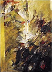 در تابلوی بزرگ "وقت نهار" از مجموعه کارهای بزرگ بهکلام به اندازه دومتر در سه متر آرامش تهديد کننده ای به چشم می خورد. به گمان من صرفنظر از تکنيک قوی، خطوط و فرمهای جا افتاده، و تلفيق نقاشی فيگوراتيو و ابستراکت، مهمترين ويژگی کار بهکلام حرکت است. اين حرکت شور زندگی را در تابلوهای او دوچندان می کند. در کارهای قديمی تر او حتی آدمهايی که در سنگ فرو رفته اند در تلاش بيرون آمدن اند. بهکلام در سالهای اخير دو سه باری به برزيل سفر کرده. دستاورد اين سفرها نقاشی های بسياری است، در اندازه های تقريبی ۷۰ در۱۰۰، که بخشی از آنها در خانه وردی به ديوارها آويخته شده اند. در اين تابلوها شيوه فرم ها و خط ها چندان تغييری نکرده اند. همان شگردهايی بکار می رود، که در کارهای ديگر بهکلام ديده می شود. اما رنگها بطرز شگفتی شاد و روشن شده اند. پس از آن برخی دگرگونی ها در موضوع تابلوها جلب نظر می کند. در حرکت آدمها گرمای آزادی و بی تکلفی ديده می شود. اين ويژگی زمانی برجسته تر می شود که بيننده آنها را با فضاهای تيره تعدادی از کارهای بهکلام که در طبقه هفتم ساختمان وردی به ديوار آويخته شده اند مقايسه کند. در طبقه هفتم بجز تابلوهای مورد اشاره يک تابلوی بزرگ از سری کارهای ۱۸۴۸، و چندتا از زيباترين تابلوهای بهکلام، که بازتاب جنگ ايران و عراق اند، آويخته شده است. اين تابلوها يکی از درخشانترين فصلهای کارنامه بهکلام را در بر می گيرند.