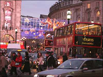 روزهای نزديک به کريسمس و سال نوی ميلادی مرکز لندن چهره ديگری به خود می گيرد. هم بر تعداد توريست ها افزوده می شود و هم بسياری از لندنی ها حومه نشينان اين شهر برای تهيه هدايای کريسمس به مراکز خريد معروف لندن مانند خيابان آکسفورد، خيابان ريجنت و ميدان پيکادلی می روند.