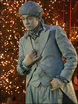 معرکه گيری که خود را به صورت مجسمه در آورده است |
