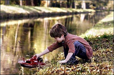 پسر ديگرم، سيلاس، در حال بازی با قايقش پس از جمع کردن برگهای پائيزی. قايق آتش نشانی او برای ماموريت ديگری ساحل را ترک می کند.