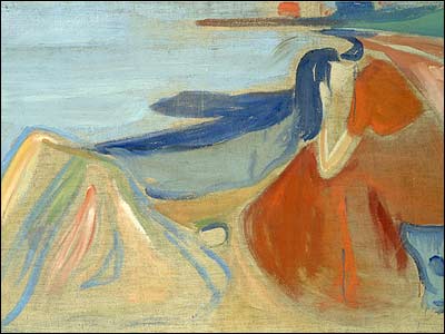 تابلوی نقاشی "ماليخوليا" اثر ادوارد مونک، اهل نروژ که بين سال های 1906 - 1907 خاق شده و احساسات ماليخوليايی را از جنبه تنهايی و افسردگی روحی انسان نشان می دهد. |