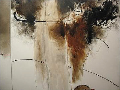 مهدی حسينی با رنگ آبی حال و هوای سکون و سکوت را به بيننده عرضه می کند