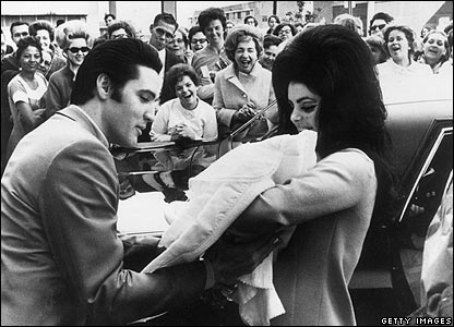 در سال ۱۹۶۷ الویس با پریسیلا بیولو مدل و هنرپیشه آمریکایی ازدواج کرد. این دو همدیگر را در زمان حضور الویس در ارتش دیده بودند. لیزا ماری، دختر الویس و پریسیلا در سال ۱۹۶۸ متولد شد اما پدر و مادرش پنج سال بعد طلاق گرفتند.