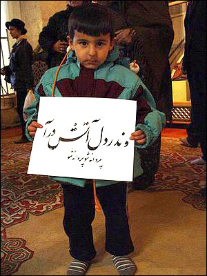 یک خطاط ایرانی اشعار مولوی را به رایگان برای بازدید کنندگان می نویسد. این پسربچه ترک یکی از این اشعار را در دست دارد.