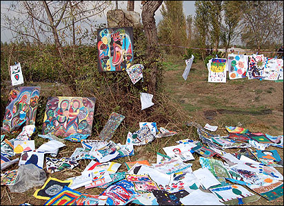 گروه حجم سبز مسیر منزل مکرمه قنبری را از ابتدای جاده با ریسمانی از نقاشی مشخص کرد |