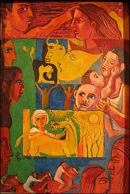 بخش زیادی از تابلوها پرتره اند و در میان پرتره ها تصویر شاملو و فروغ چشمگیرتر است. هانیبال در باره پرتره گفته است: مردم از آویزان کردن نقاشی چهره ترس روانی دارند. باید این ترس را از بین برد. ما باید به فرهنگ دیواری خود که سطح بسیار نازلی دارد بیندیشیم.