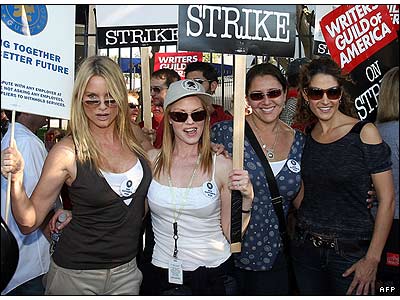 اعتصاب اتحادیه نویسندگان فیلم و تلویزیون، در ماه نوامبر، هالیوود را به حالت نیمه تعطیل در آورد. هدف این بود که نویسندگان هم مثل بیشتر عوامل اصلی فیلمها و برنامه های تلویزیونی از فروش و پخش مجدد فیلم و سریالها، دستمزد دریافت کنند. این اعتصاب مورد حمایت بعضی دیگر از عوامل دست اندرکار سینما و تلویزیون، از جمله بازیگران قرار گرفت و زمان روی پرده رفتن بسیاری از فیلمها را به تعویق انداخت. با ادامه اعتصاب تا هفته های اخیر، این نگرانی وجود دارد که مراسم اسکار سال آینده از این اقدام بی تأثیر نماند. |