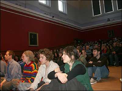 ظرفیت محل برگزاری کنسرت، 300 نفر اعلام شده بود، اما پس از پر شدن تمام صندلی ها، شماری از دانشجویان، بر روی زمین نشستند