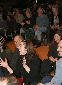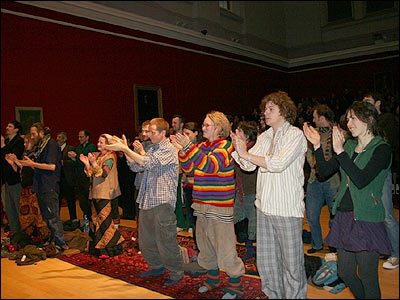 پس از اجرای قطعه موسیقی، حاضران برای دقایقی می ایستادند و کف می زدند
