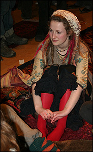 یک دختر دانشجوی اسکاتلندی، با لباس محلی، در کنسرت موسیقی افغانی