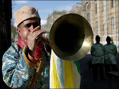 بسیاری از اقوام محلی ایران زمين با نواختن سازهای بادی سرنا و کرنا همراه با سازهای ضربی نقاره و دهل آغاز سال نو را اعلام می کنند. میراثی شفاهی که از ده ها قرن گذشتت، سینه به سینه منتقل شده است. تصاویر زیر از مراسمی است که به همت سازمان میراث فرهنگی در کنار سر در باغ ملی برگزار شد و نوازنده هایی از استان فارس و گیلان با سازهای خود، نواهای نوروزی نواختند.