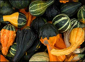 هيچ تصويری از پائيز کانادا بدون حضور کدو تنبل های عظيم الجثه کامل نيست. آمدن اين کدوها در شکل ها، اندازه ها و رنگ های متنوع به بازار، برای ساکنان اين کشور نشانه پايان تابستان و شروع فصل سرماست. کدو از جمله محصولاتی ست که بوميان آمريکای شمالی پيش از آمدن اروپائيان به عمل می آورده اند و در تغذيه آنها نقش مهمی داشته است. هر سال پائيز در نقاط مختلف اين کشور کشاورزان برای عرضه بزرگترين کدو تنبل سال در مسابقه ای که به اين منظور برگزار می شود با يکديگر رقابت می کنند. کدو های شرکت کننده در مسابقه که صدها کيلو وزن دارند با کاميون به محل مسابقه حمل می شوند. مهاجران کاتوليک ايرلندی، در نيمه قرن نوزدهم، سنت هالووين يا جشن ارواح را با خود به آمريکای شمالی آوردند و استفاده از کدو تنبل به عنوان فانوسی که در آن شمع می سوزد رواج پيدا کرد. پامکين پای يا کيک کدو از شيرينی های محبوب کانادائی هاست که هر سال در مراسم شکرگزاری به عنوان دسر صرف می شود. مجموعه رنگارنگ کدو های کانادا را ياس رازقی از شهر مونترال برای ما فرستاده است: