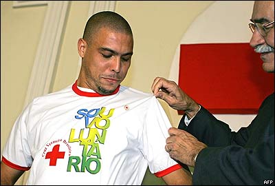 رونالدو فوتباليست معروف برزيلی از لویی هرناندس رئیس صليب سرخ برزيل پيراهن شماره يک داوطلب نمايندگی اين مرکز را دريافت کرد. رونالدو نماينده افتخاری صليب سرخ برزيل در جهان است.