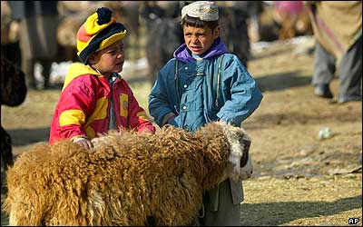 پسرک افغان برای کمک به به پدر و مادرش در فروش گوسفند در انتظار مشتری نشسته است. در آستانه عيد قربان، مسلمانان در سراسر جهان، چهار پایان را برای انجام مراسم قربانی خريد و فروش می کنند