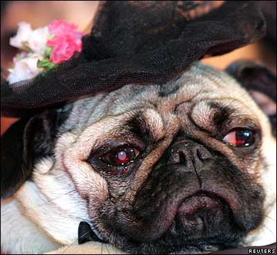یک سگ نژاد 'پاگ' در يک نمايش مد لباس سگ در توکيو پايتخت ژاپن.