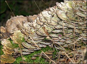 تارهای عنکبوت همانطوری که قارچها سطح درخت را فرا گرفته، آن را پوشانده اند، ماسوله