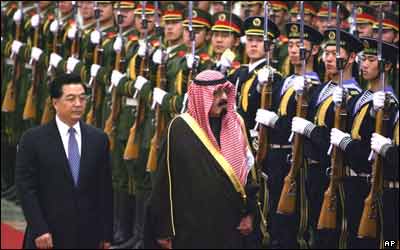 ملک عبدالله، پادشاه عربستان سعودی، به چين سفر کرده است. او در اين عکس همراه با هو جين تائو، رئيس جمهور چين ديده می شود. انتظار می رود وی در اين سفر در باره نفت و مسائل امنيتی با مقامات چينی گفتگو کند.