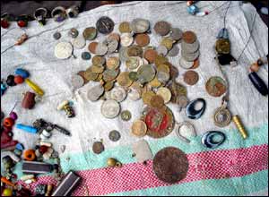 پول سابق افغانی از دوران شاه امان الله خان و ديگر شاهان که ديگر در جريان نيست و از آن استفاده تزيينی می شود. عکس از ميرروح الله سادات