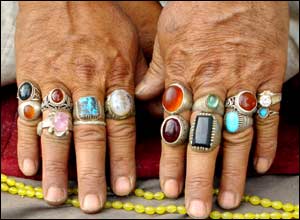 تعدادی انگشتر با نگين های مختلف مانند فيروزه، زمرد، عقيق و لاجورد از معادن افغانستان. عکس از ميرروح الله سادات