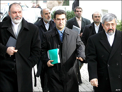 اعضای هيت مذاکره کننده ايرانی: علی حسينی تاش و علی اصغر سلطانی هنگام ترک محل مذاکرات با وزيران خارجه اروپا در وين