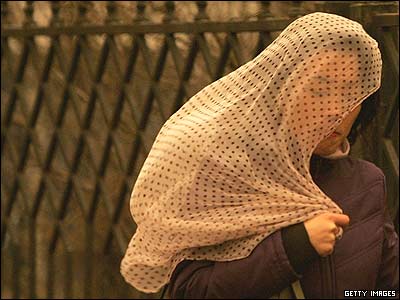 زنی صورتش را به دليل وزش طوفان شن و وضعيت بد هوا در شمال چين با روسری پوشانده است.