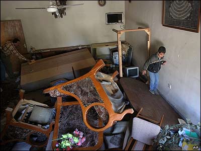 مردانی که دکانهايشان در اثر زد و خورد شدید میان نیروهای پاکستانی و پيکارجويان اسلامگرا در منطقه ای وزیرستان شمالی ویران شده است، در ميان آوار، باقی مانده متعلقات شان را جستجو می کنند.