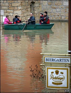 شهروندان شهر راتن در استان ساکسنی آلمان از طريق قايق در خيابان های شهرشان رفت و آمد می کنند. در اثر باران های شديد اخير و آب شدن يخ ها سطح رودخانه البه بالا آمده و خيلی از مناطق زير آب رفته است.