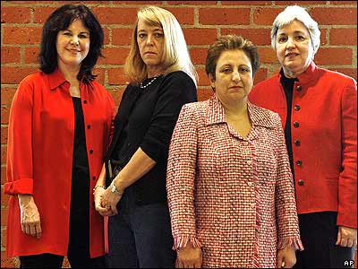 شيرين عبادی و سه تن ديگر از برندگان جايزه نوبل در مراسم بزرگداشت وی در لس آنجلس.