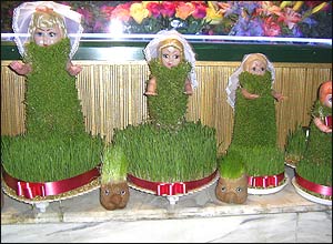 | | عروسکهای زيبا که لباس سبز به تن کرده اند. معمولا اين عروسک ها را به خانه عروس می فرستند |