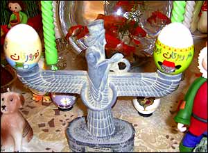 | | نقش فروهر (نمادزردشت) در سفره هفت سين |