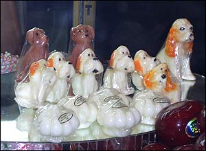 | | شمع های به شکل سگ. امسال به اساس تقويم چينی سال سگ است |