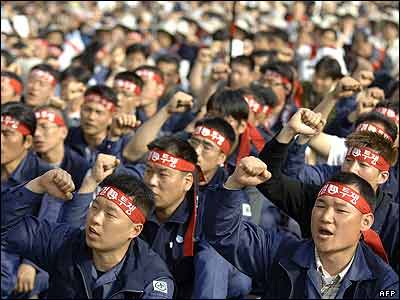 راهپيمايی اعضای اتحاديه کارگری کره جنوبی در سئول در اعتراض به قانون جديدی در اين کشور که به کارفرمايان قدرت عمل بيشتری می دهد.