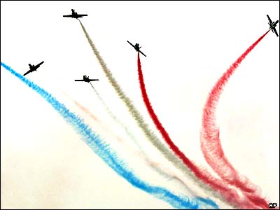هواپيماهای جت نيروی هوايی تايلند در يک مانور نمايشی در جنوب آن کشور