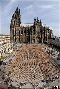 مجموعه مجسمه ساخته شده از وسايل بازمانده خانگی. اين اثر هانس يورگن شولت، هنرمند آلمانی در مقابل کليسای جامع شهر کلن، آلمان به نمايش گذاشته شده است.