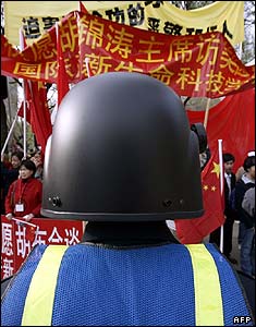 تظاهرات مخالفين هو جين تائو، رئيس جمهور چين در جريان ديدار او از آمريکا.