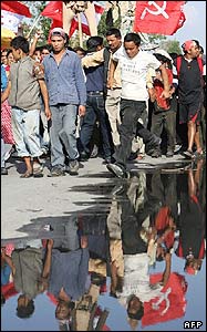 مخالفان نپالی در جريان تظاهرات ديگری که امروز در شهر کاتماندو، پايتخت اين کشور برقرار شد. گفته می شود که رهبران احزاب مخالف تظاهرات تازه ای برگزار خواهند کرد. |