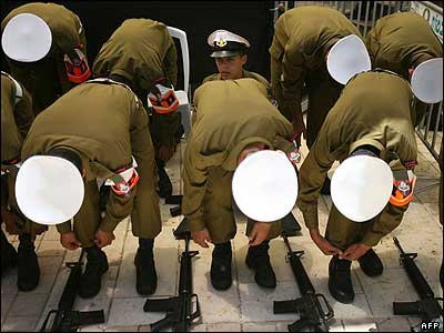 سربازان اسرائيلی در حال آماده شدن برای شرکت در مراسم سالروز اعلام موجوديت کشور اسراييل.