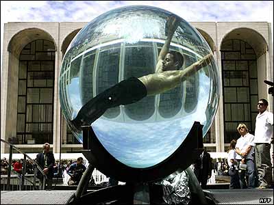 ديويد بلين، شعبده باز آمريکايی در يک محفظه پر از آب در شهر نيويورک. او قرار است که بمدت هفت روز و هفت شب در اين محفظه بماند و از طريق لوله ای که به ماسکی در صورتش متصل است، نفس بکشد. همچنين قرار است که از اين راه به او غذا هم داده شود.