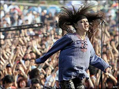 يکی از گروه های موسيقی راک چينی در حال اجرای کنسرتی در شهر پکن، پايتخت اين کشور. بعد از گذشت بيست سال، صنعت موسيقی راک در چين محبوبيت بيش از اندازه ای پيدا کرده و تبديل به صدای اعتراض آميزی برای جوانان شده است. |