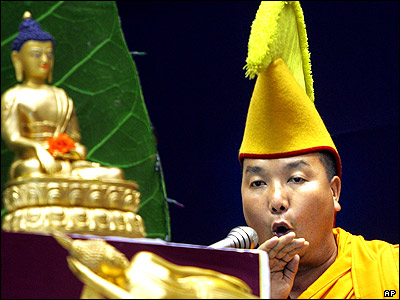 راهب بودايی در حال خواندن سرود مذهبی به مناسبت دو هزار و پنجاه و پنجمين سالگرد مرگ بودا در دهلی نو هند.