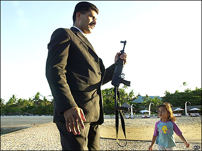 يک مامور امنيتی در بالی، پايتخت اندونزی که محل برگزاری جلسه رهبران 8 کشور در حال توسعه مسلمان است.