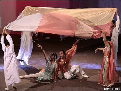 دانش آموزان مدرسه موسيقی و باله بغداد در جریان فستیوال سالیانه که به مناسبت پایان سال تحصیلی این مدرسه در تاتر بغداد انجام می شود. |