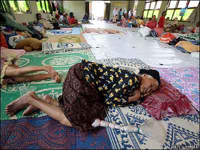 زنی سالخورده از روستایی در کنار قله مراپی در اندونزی به همراه تعداد دیگری از روستاییان، به دليل نگرانی از آتشفاشانی شدن قله مراپی به اردوگاهی در جاوای مرکزی، منتقل شده اند، هر چند بسیاری از اين روستاییان هشدارها مبنی بر دوری از این آتشفشان و وجود فوران ابرهايی از گاز داغ و خاکستر در جریان شب را نادیده گرفته و در خا نه های خود مانده اند.