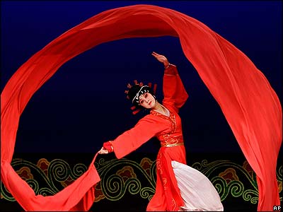 هنر پیشه چینی در حال تمرين نمايشی رقص "آستین های آبی" قبل از به اجرا آمدن این رقص به روی صحنه در هنگ کنگ. این نمایش از 16 تا 18 ماه مه اجرا می شود.